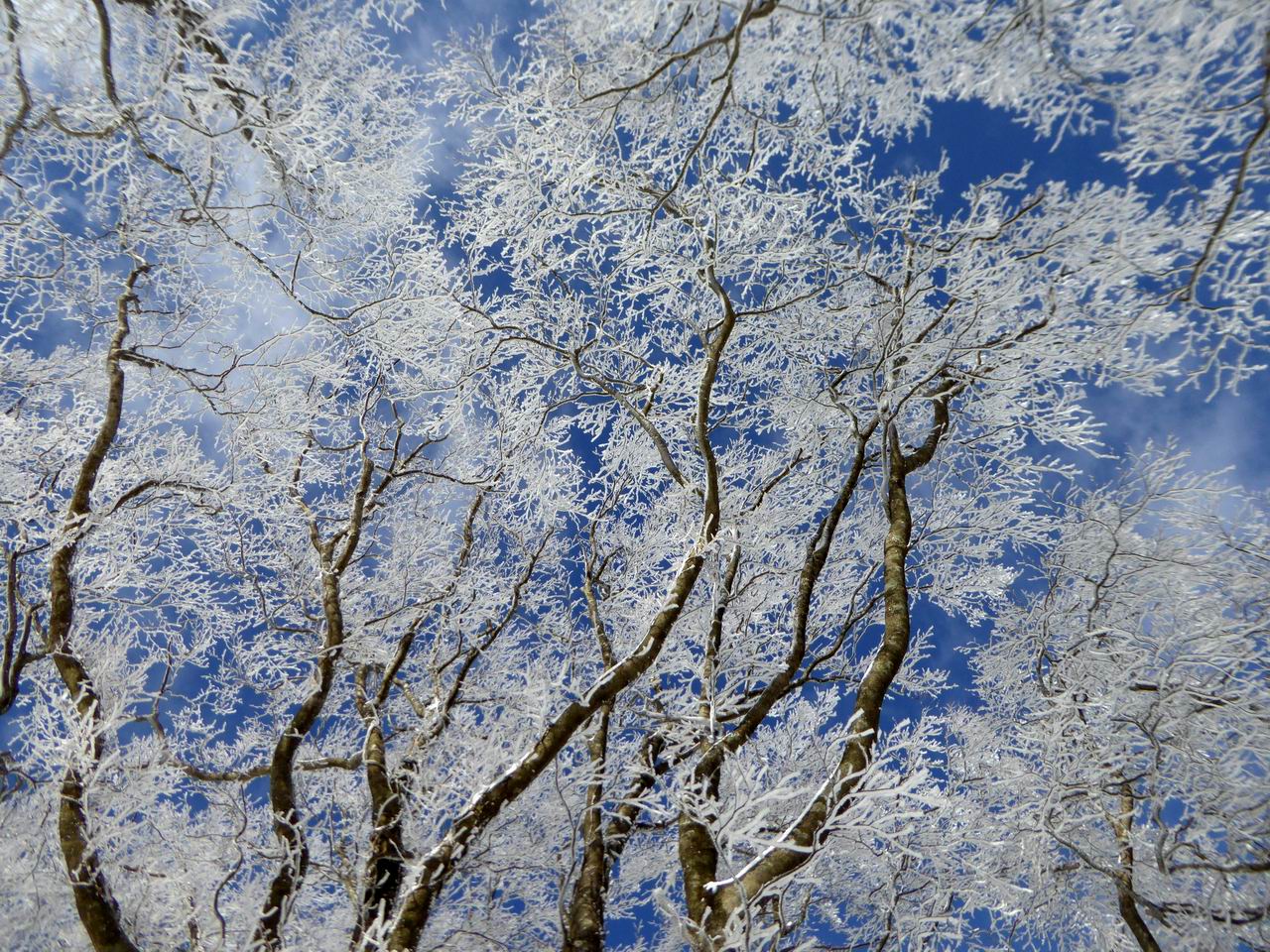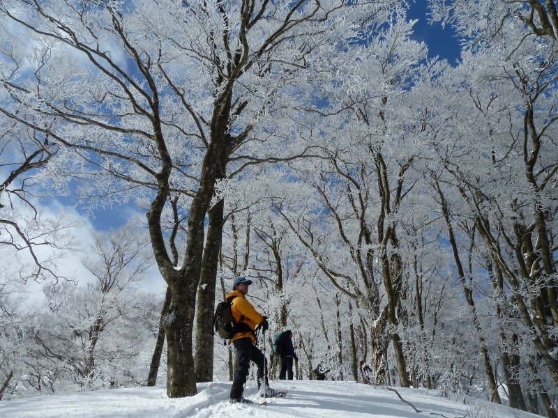 歩き始めると曇りの予報に反して空には青空が見えてきた。これまで1月のスノー衆で晴れたことが無かったと聞き、