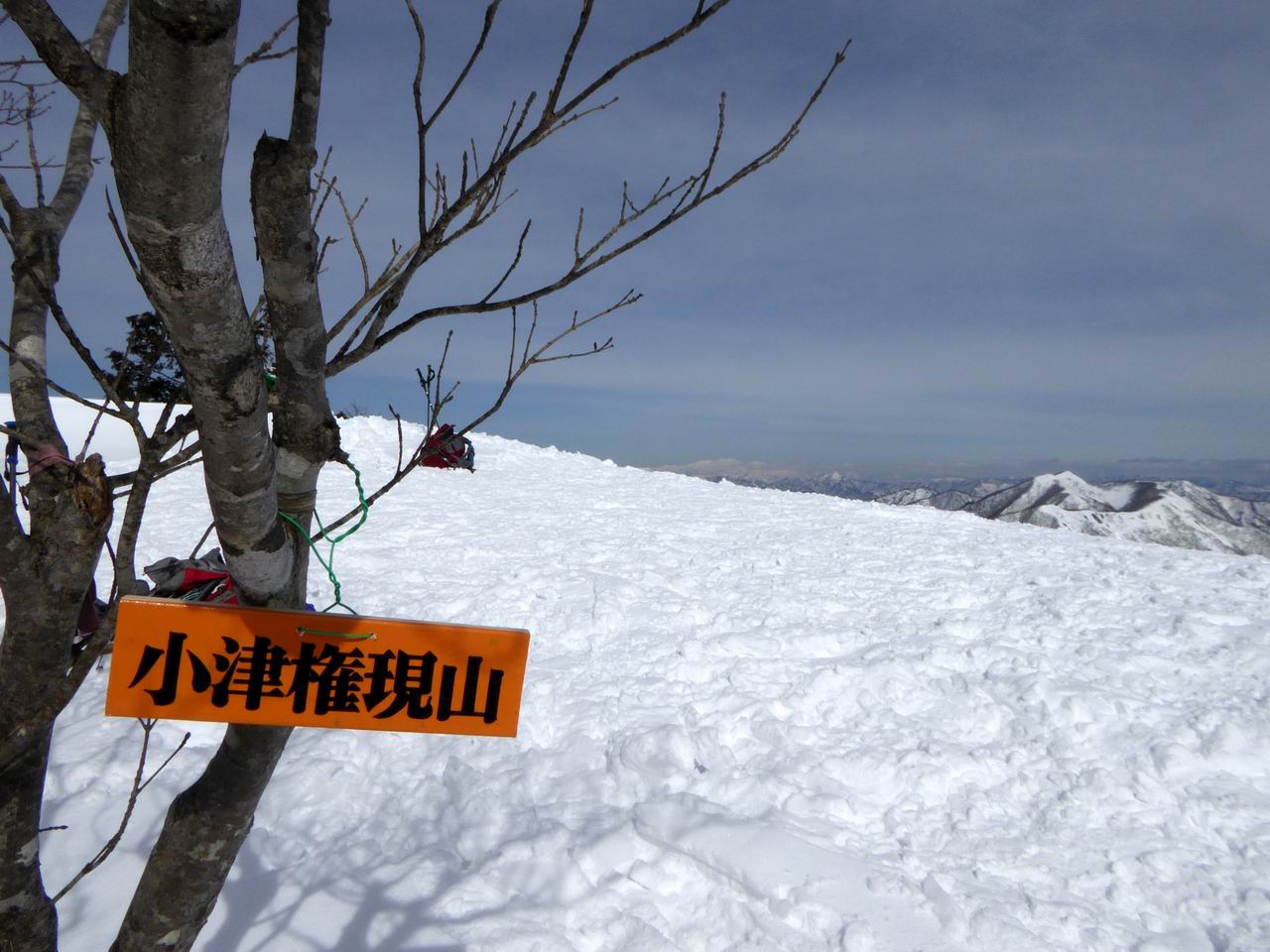 山日和さん主催のスノー衆2015PartⅡは奥美濃(岐阜)の小津権現山である。私にとっては未踏の山であるため少し調べた。地形図には「権現山」としか書かれていないが、地元山裾の集落小津の名を冠して小津権現山と呼ばれている。ぎふ百山のひとつで、小津白山神社を祀る信仰の山であり、山頂には二等三角点と大権現白山神社の祠がある。また、雷倉、花房山と並んで小津三山と呼ばれている。主な登山ルートは、小津集落からのノーマルルートと今回下山に使った藤波ルートである。