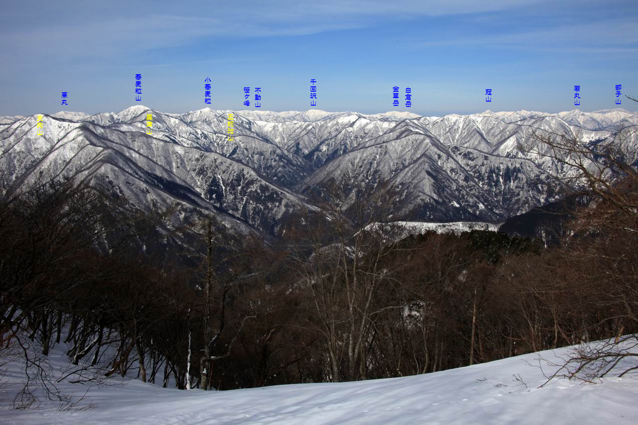 千回沢山、不動山、笹ヶ峰、五蛇池山、小蕎麦粒、美濃俣丸、黒津山、蕎麦粒山、烏帽子山、アラクラ、高丸
