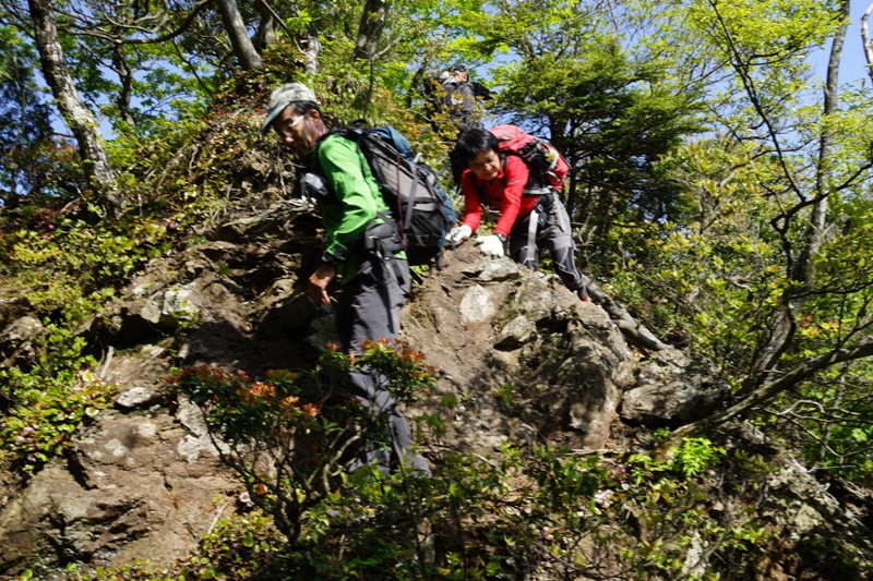 初めて行った時は、山頂部のピークをひとつひとつ確かめながら回るのが、とてもおもしろかったですね。銚子ヶ口は、杠葉尾からの登山道はつまらないけど、頂上部分はピークがたくさんあってそれだけで楽しめます。東峰や南峰は展望も楽しめる。南峰で展望を眺めながらランチがいい。