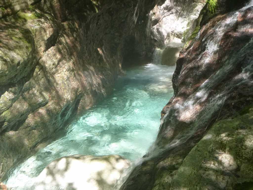 そのあとしばらくゴーロ帯をわいわい歩いていくと箱状廊下.ここも前鬼川の最大の見どころの一つだ.左岸湧水帯からから湧き出る水が箱状廊下に流れ込み,その水は限りなくブルーに近い.今回はあまり予備知識を詰め込まずにきたせいか,感激で声も出ない感じ.ただ,「すごいねえ」というありきたりな言葉しか出てこない.