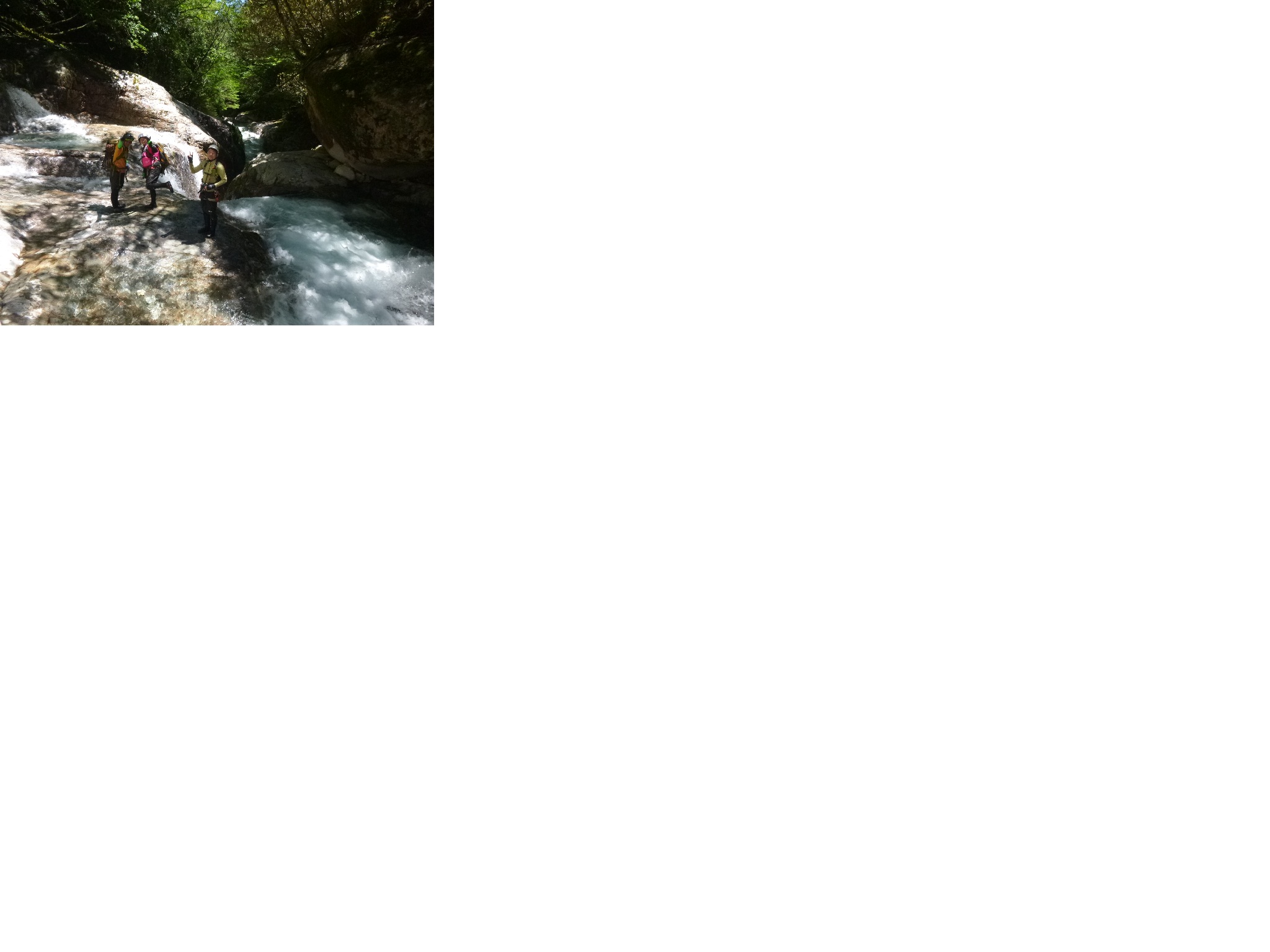 piccoloさん,ケルトさん,大変お世話になりました.ありがとうございました.また,同行者の皆さん,楽しかったですねえ.またどこかで一緒に沢行できるといいですね.次回は是非白倉又谷へ連れて行ってくださいませませm(__)mpiccoloさん、ケルトさんありがとうございました。久々に堪能しました。私沢登りを修行のようにとらえてたところがあったのですが、違う世界を開眼させていただきました。