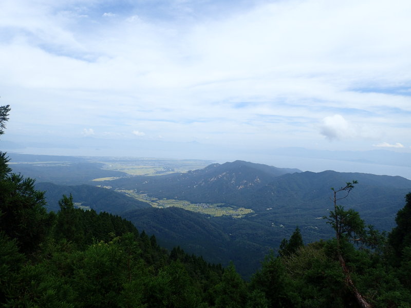 釣瓶岳から岩阿砂利山・高島市街方向を見たら、視線上には「畑の棚田」はなくて、