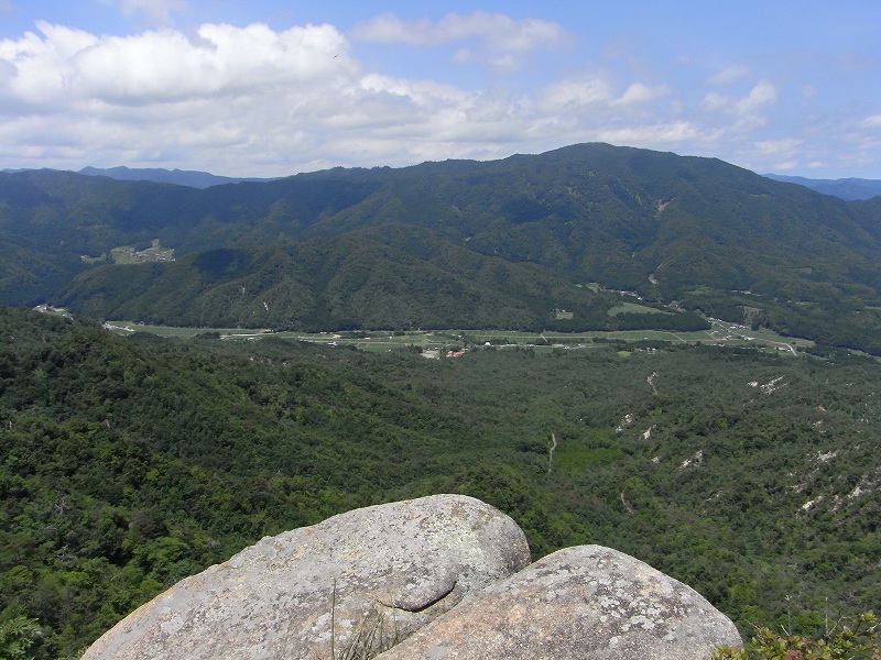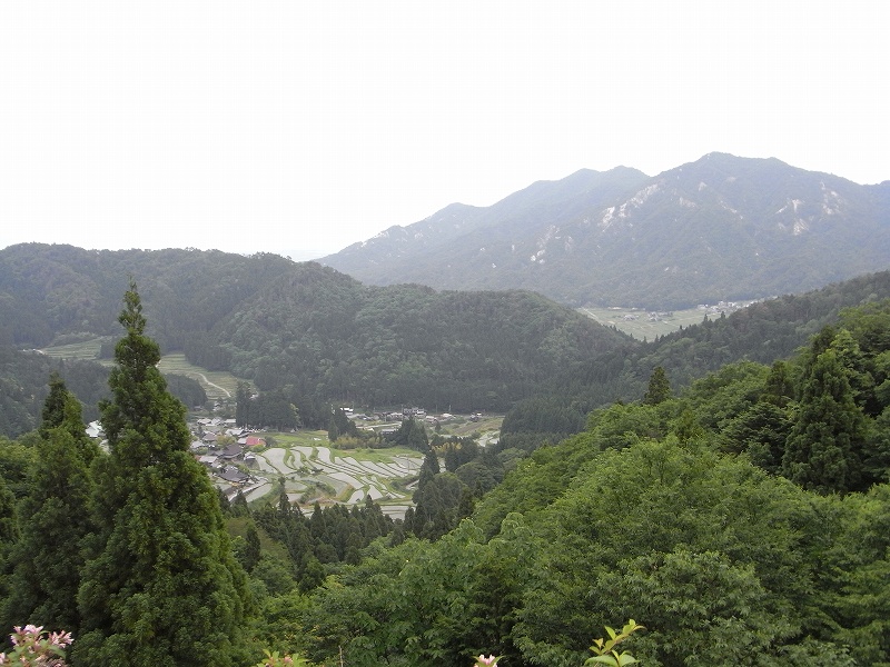 手前の谷間に広がる緑色のブロックは日本の棚田百選にも選ばれている「畑の棚田」だ。その向こうにリトル