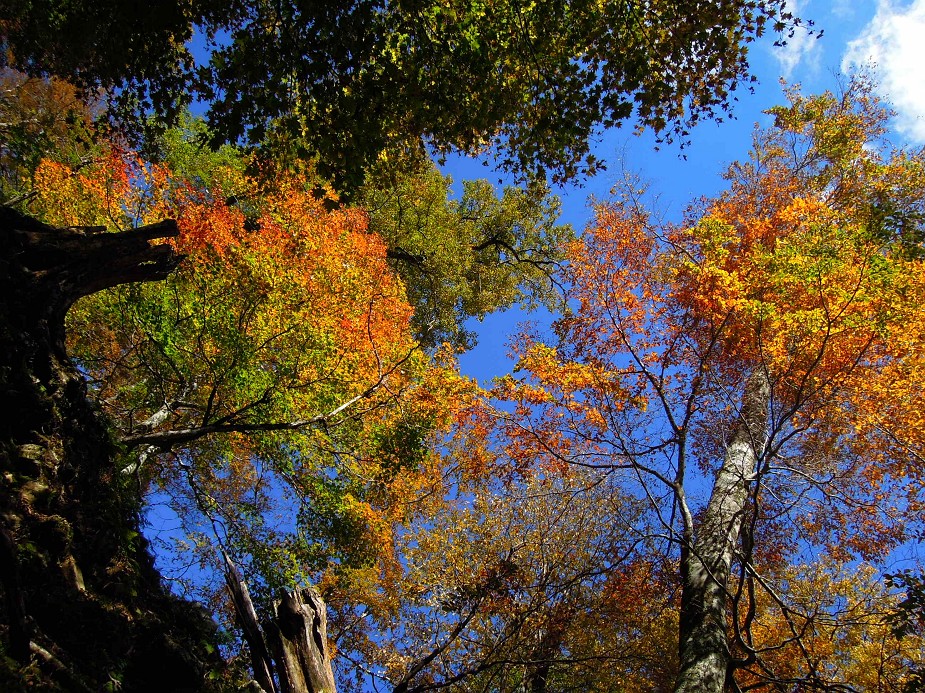 うん。いい色合いです。林道から見上げる檜塚の紅葉は、若干早いと思いますた。