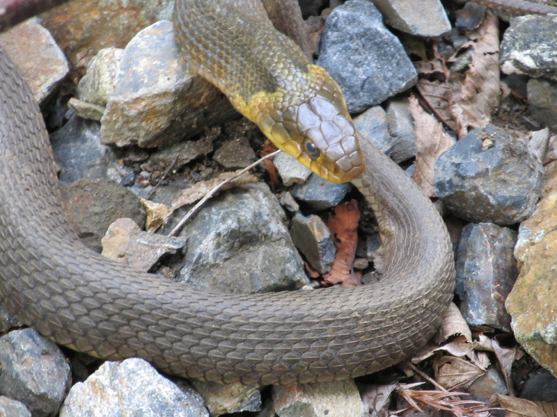 林道を下りだす、この分じゃ3時半を回りそうだな、予定より時間が掛かってる、朝見た尾根はどこから降りるのかな?林道が尾根を乗り越す所、zippさんが蓮に降りる古道が有ると言っていた、道形が有るのは確認しているがここから尾根にも入るみたい、ここを降りよう。植林と自然林の境を下っていく、途中降りにくい所も有るが回りこんで下ると植林地が続く左に里川が見えてきた、水路には鉄橋がかかり山の家跡地に続と思われる道が有る、もしかしてzippさんが言ってた古道とはこれだったのかな?(地図をもらったはずだが保存しなかったのか見当たらないや)いずれにせよこれは近道だった、ばっちり車の後ろにピンポイントでした、雷も鳴り出しまたポツリポツリと当たり出した、滑り込みセーフ。集落跡を過ぎた所まで下って谷に下りスッポンポンで行水、道は直ぐ上だけど誰も通らないさ。拭いていると雨が酷くなってきたパンツのままで車に戻る、と軽トラが一台
