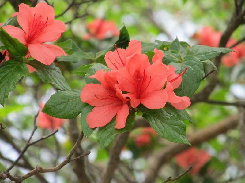 明神岳をトラバース、この辺りのブナは細いけど本数も多いので中々良い感じ稜線に戻るとツツジがまだ沢山咲いているこれがオンツツジなのだろうか?前岳に付くもやはり虫が多い上に奈良県側から暗雲がやってきている、意気消沈で来た道を戻る。途中で雨が降り出した、スコール状に降ってくるので慌てて合羽を着るが5分も経たない内に晴れ間が見えて来て蒸れに堪らず合羽を脱ぐ。カップルの帰路に出会うかなと思うも会わずに奥峰着、奥峰にも誰も居ない、ヒキウス平を見ると2劇場にカップルが居るよ、虫がえらいのか、泊まるのかツェルトを張っているよ。私も虫除けでツェルト張ろうかなと思ったけど虫は除けられても、蒸は除けられないだろうと止めたのだった。