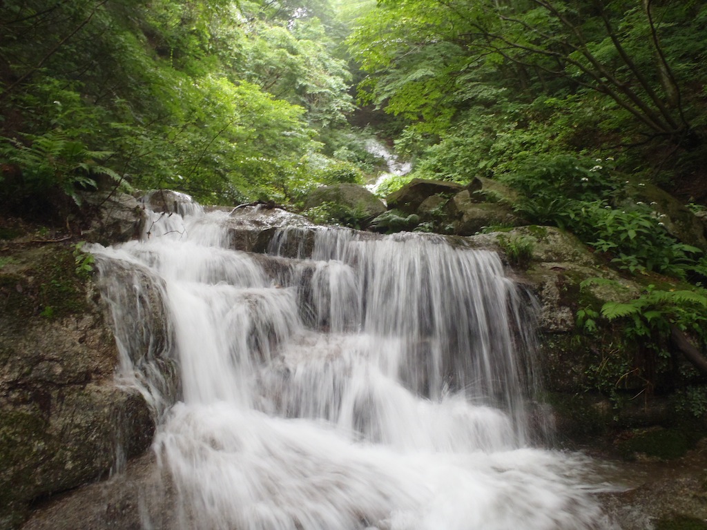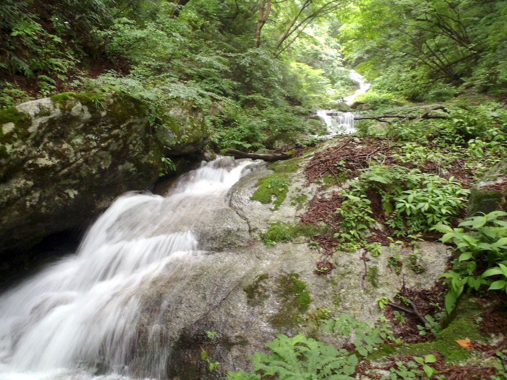やがて滑滝や3~4mの滝が現れる。何れも普段はチョロチョロなのだろうが今日は水量が多く豪快だ。そこをシャワーで越えていくのが気持ちがいい。花崗岩なのでフリクションが利いて楽しく登れる。