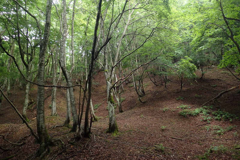最後もヤブ無しで中山谷山のピークにほぼダイレクトで上がることができる。そのツメと尾根上はなかなかのブナ林が展開して非常に気