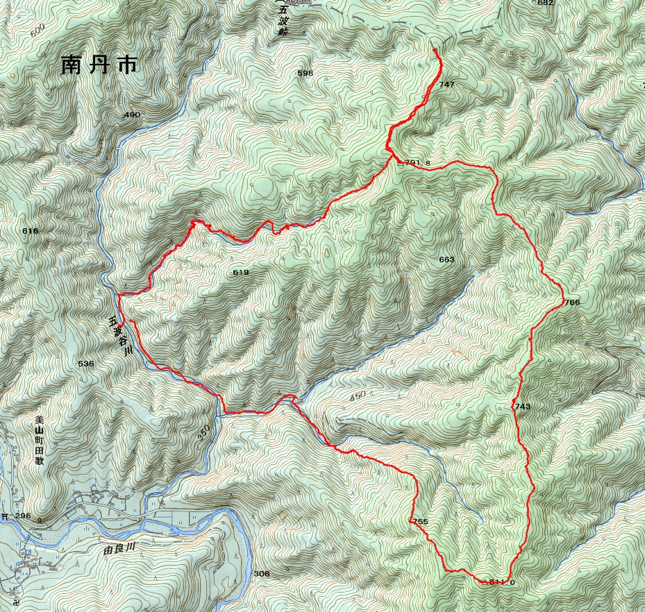 地形図には山も谷も名前が書いてないので、結局、どこを登ってどこを降りてきたのかよくわからんが、こうですかいな。
