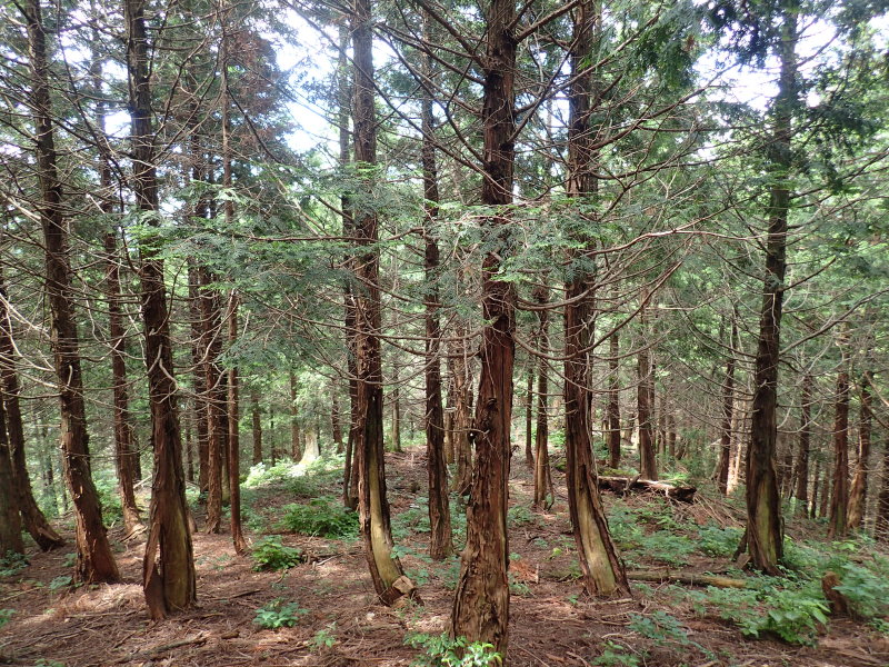 奥ノ谷山からの下りはもう少し期待していたのだが、まったくつまらない放置植林の尾根だった。美林で有名な北山でも放置植林が