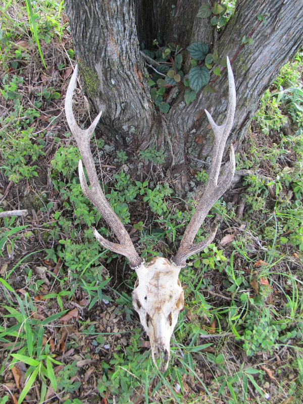 道脇には立派な角を付けたお頭付きの鹿の頭骨が落ちていた、木に立てかけておこう。