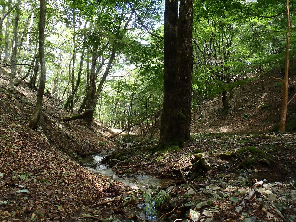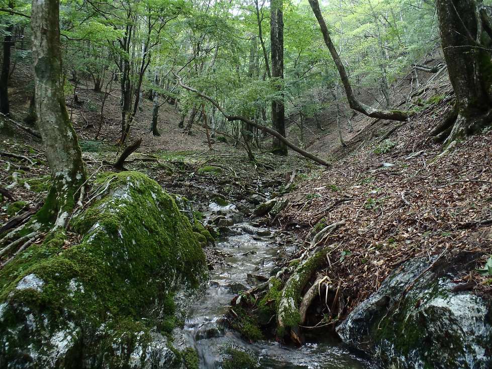 早々に昼食を切り上げ、右俣を登る。穏やかな森です。