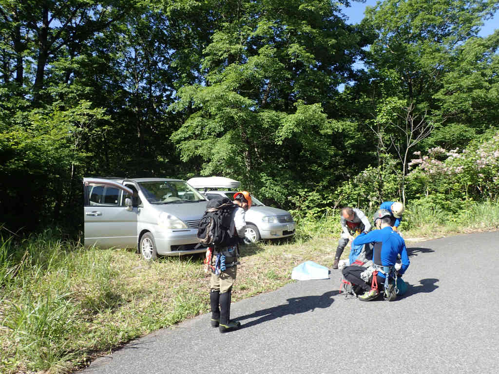 朝7時に池田温泉の道の駅に集合。そろったのは5人。最後に参加した兎夢さん以外、竹屋谷は始めての沢。かなり調べたので迷子になる心配は