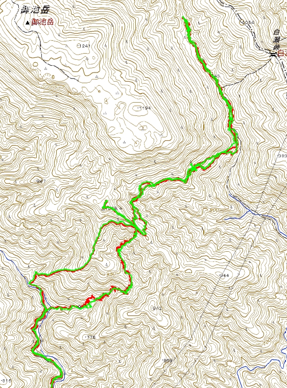 私がログを取りだしたのは2003~4年からですので、残念ながらありません。2002年10月の山行には確かに私もいっしょに行きましたが、まだGPSを持っていなかったのでログが残っておらず、記録も、「コグルミ谷-真ノ谷-御池東南端-」としか書いてありません。真ノ谷から東南端へ直登するのではなく、そんな亀尾の方を回ったのでしたか。もし、ハリマオさんがその時のGPSログをお持ちなら、ぜひ頂けませんか。