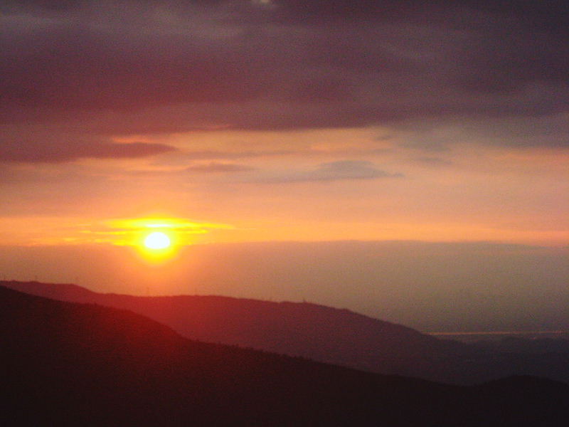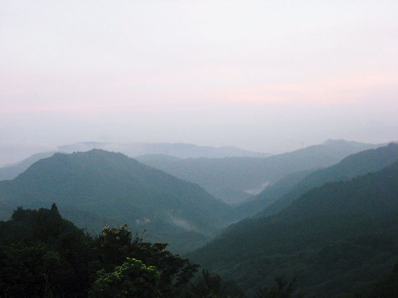空はもやってる西日が暑い、峠を越える風はやや強くて温風の様だよ。
