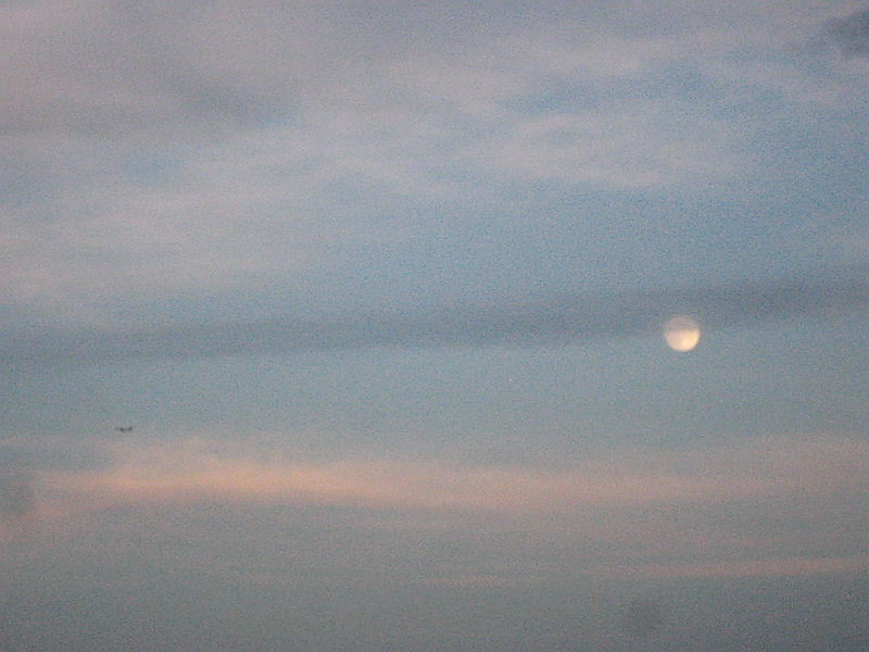 月はかなり上がったよ、飛行機が横切るよセントレアへかな?乗客もお月見してるかな。