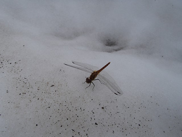 雪渓のトンボも、この暑さで熱中症なんでしょうか(゜o゜)