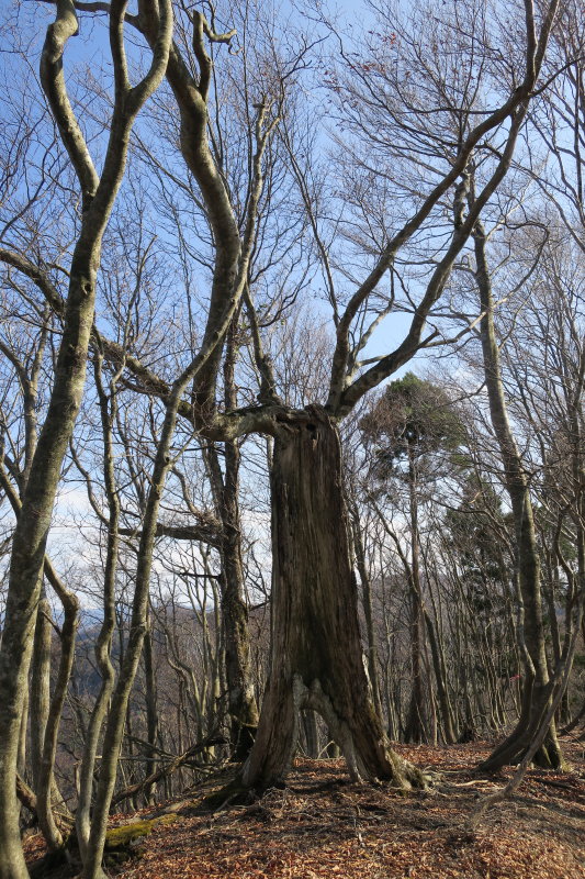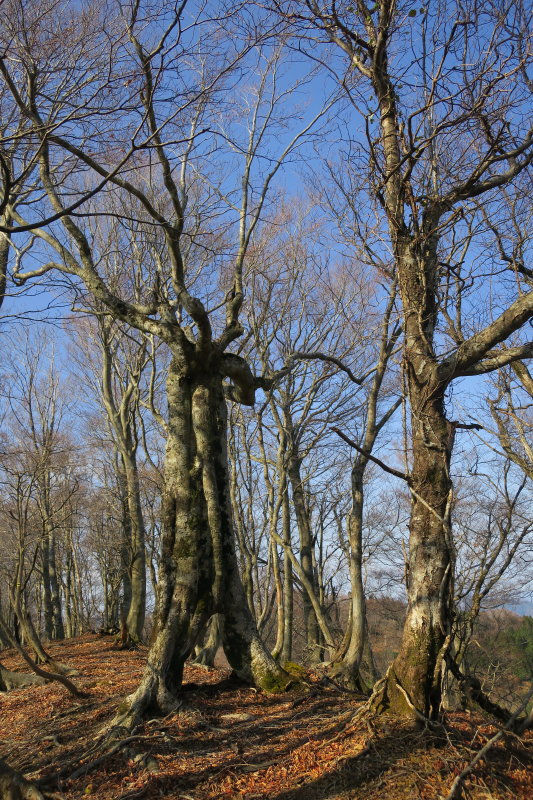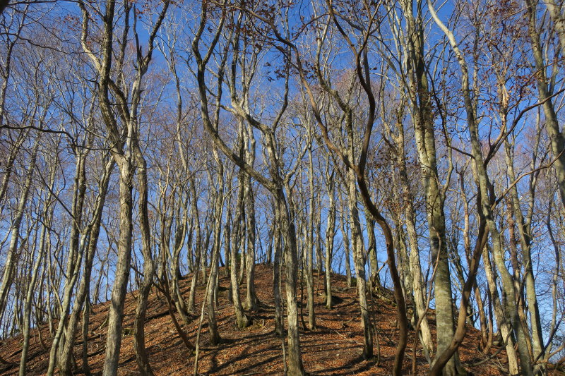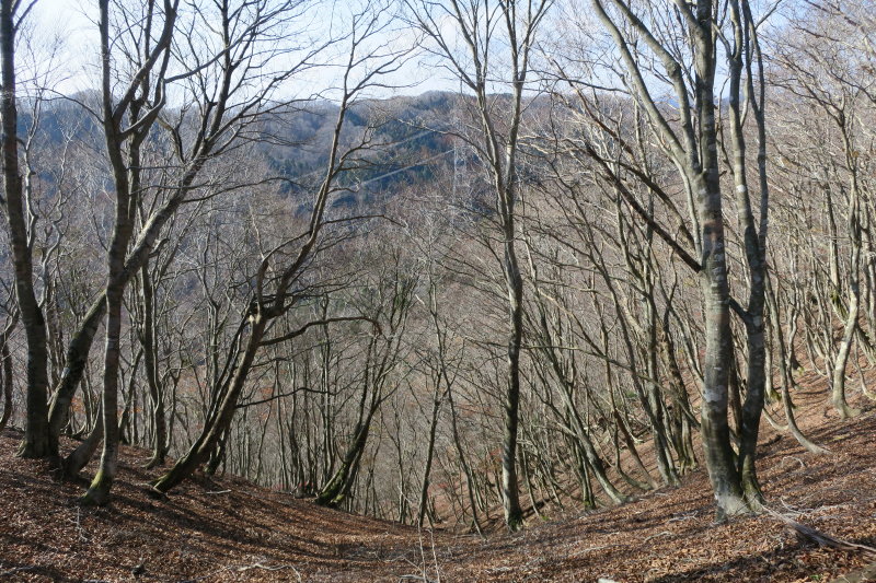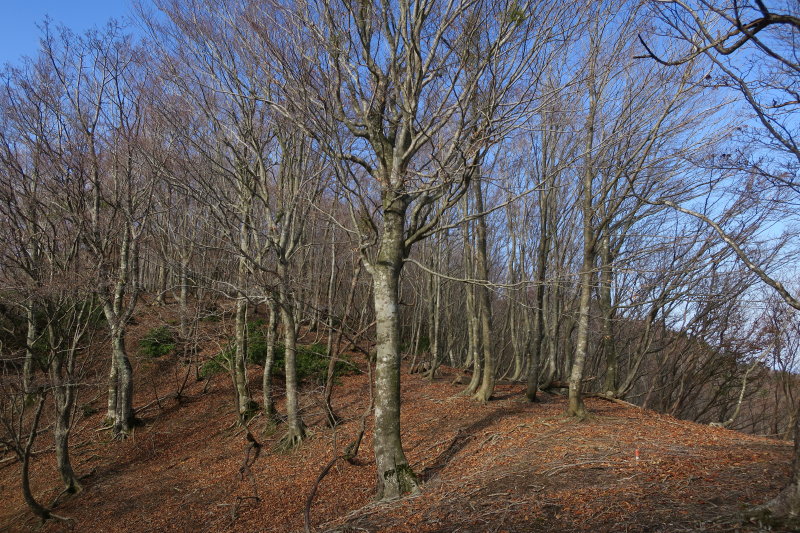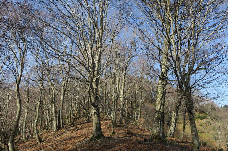 743m標高点のあるピークはタケガダンと呼ばれている。このピークの前後はブナ林が素晴らしく、葉の落ちた