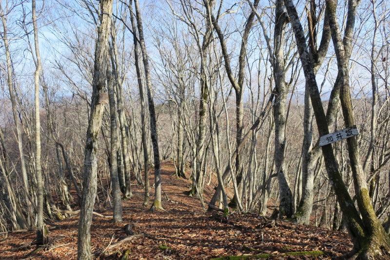 知らされる、ブナ林の続く縦走路だった。稜線から坂本へ下山する分岐点で東の方を眺めた時、ブナの稜線が
