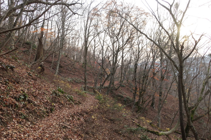 戻ることになった。ただ林道の北側斜面はなかなかの樹林で、山頂まで尾根を辿った時には見られなかった風景