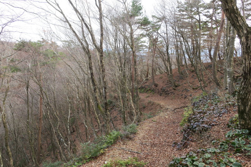 た。尾根に乗ると植林も終わり、隣と同じく自然林となる。