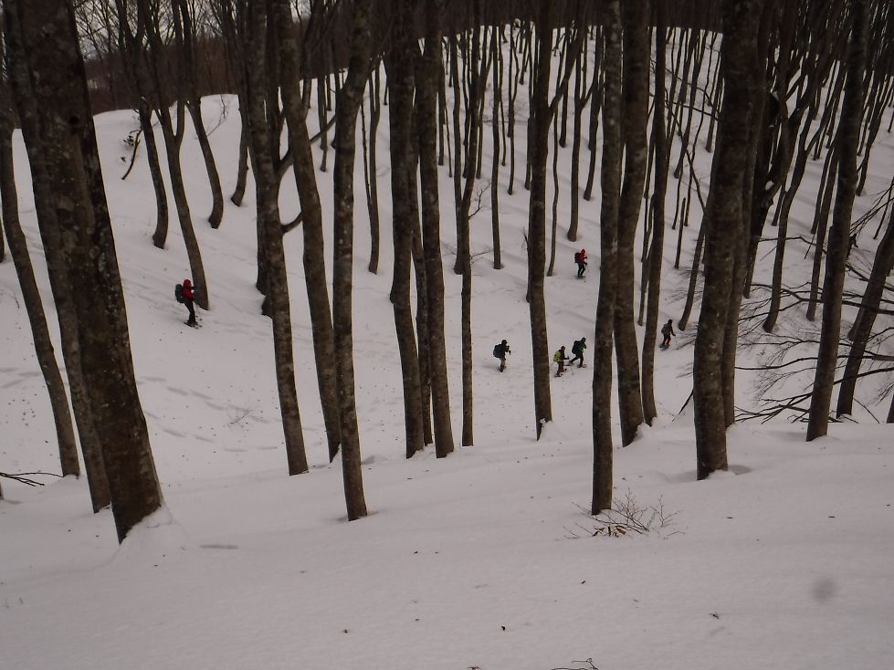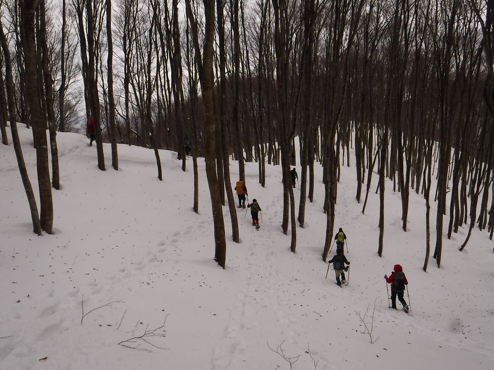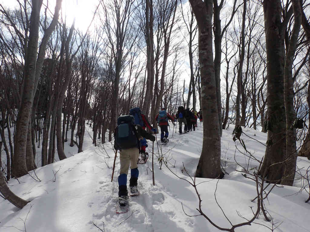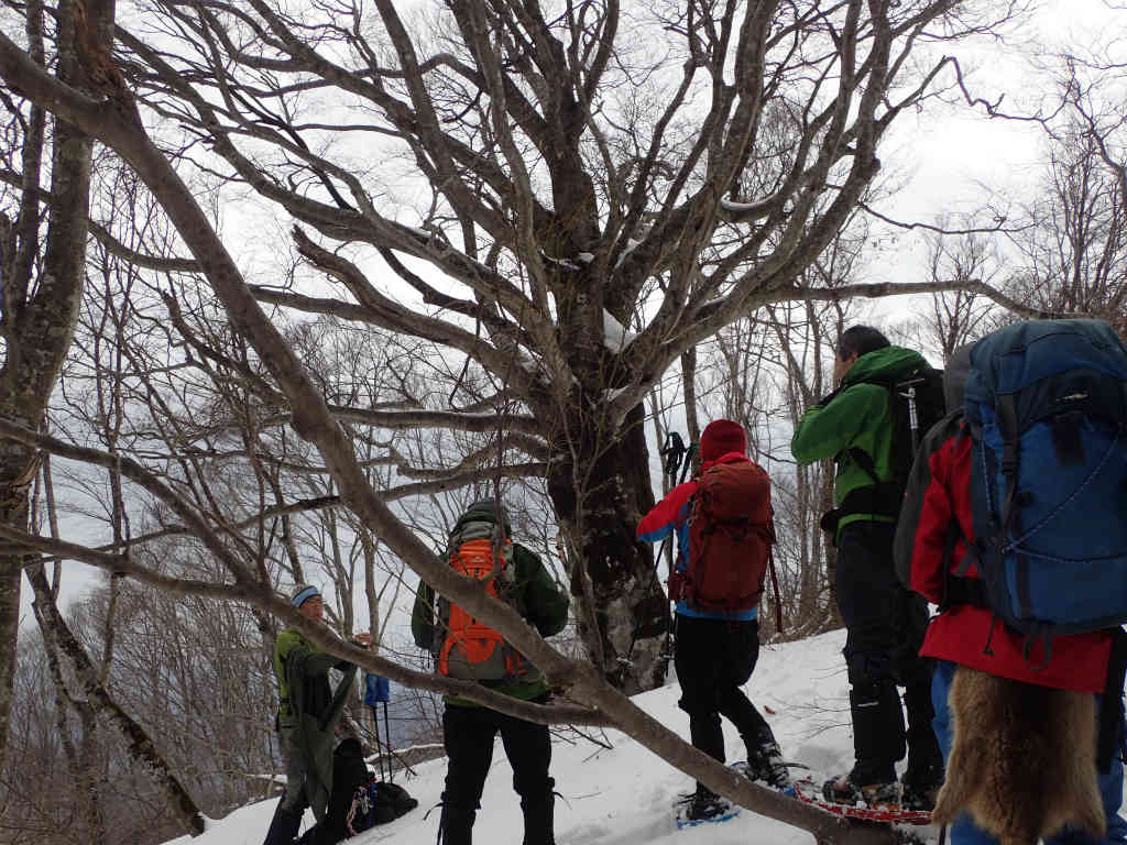 ここまでは雪もあまり締まってなくて先が思いやられましたが、沈みが少なくなって快適なブナ林歩きになりましたね。基本的にブナ林のない山には登らないタチです。