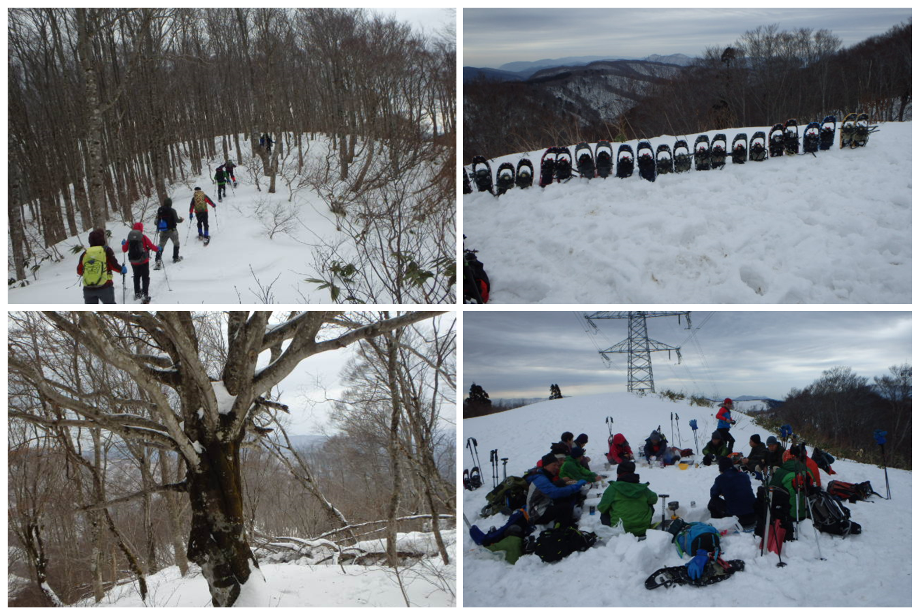稜線をしばらく東進し,送電線鉄塔のあるピークで昼食とする。のっぺりしたピーク上にあるにもかかわらず風が入り込まないので,