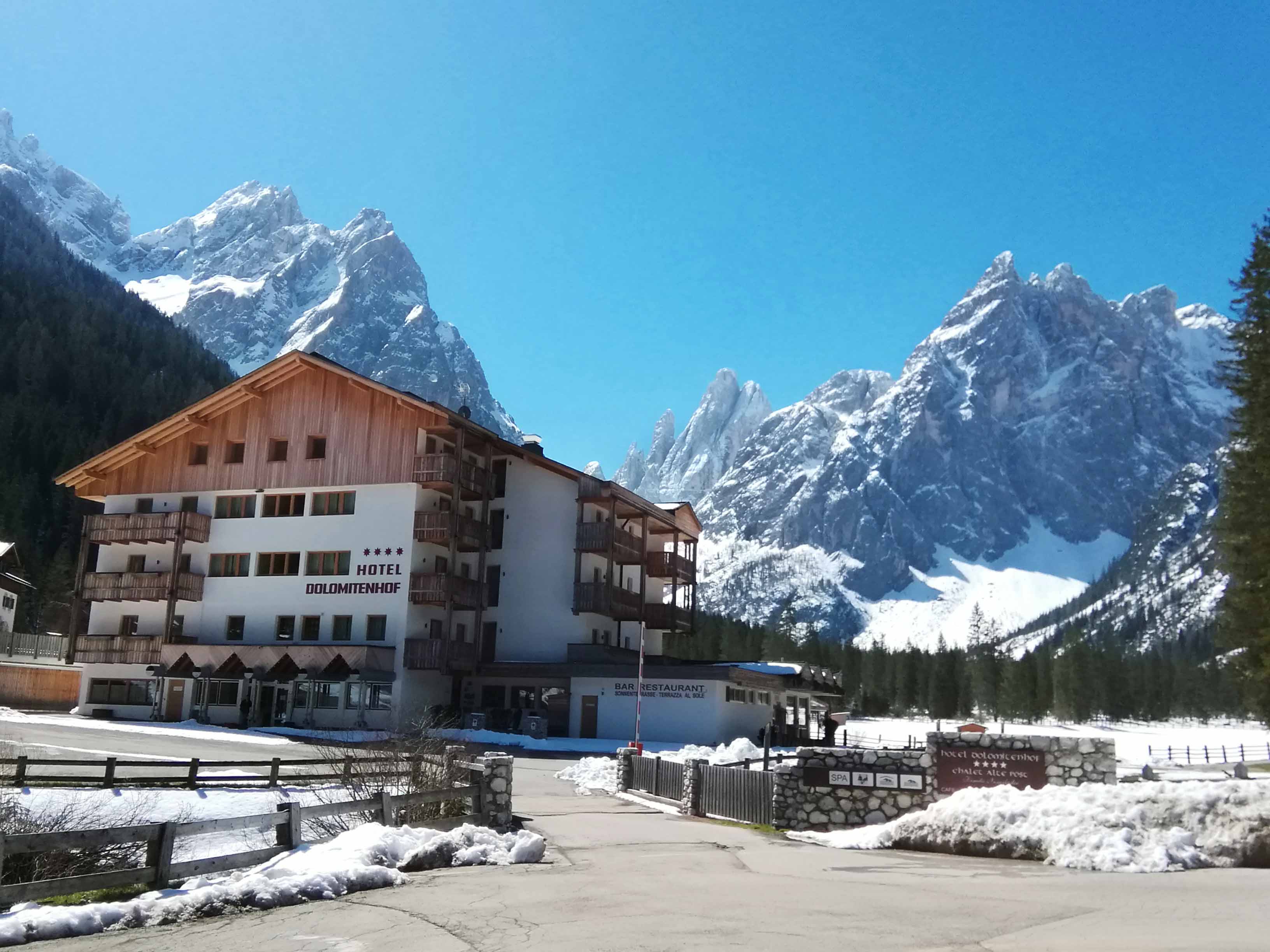 Tre Cime di Lavaredoの表玄関はオーストリア国境に近いのでドイツ・オーストリアの香りがプンプンする村を通り抜けてVal Fiscalinaに入る。ここはドロミテの上高地的存在のようなところだと思うが、オフシーズンなので有料駐車場も無料開放されている。