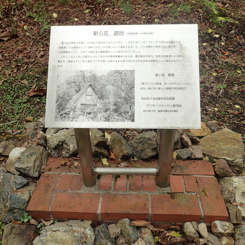 バス停の方向に歩くと、国道脇でバスを待っている男性がおられる。登山者のようであるが、こんな時間に下山するとはどのようなコースなのだろう。先方も同様に思われたようだ。男性は東京在住であるが、かつての同志社の山岳会の方らしい。昔、八丁平に同志社の山小屋があったらしいのだが、京都市が小屋の撤去を命じられてしまったとのこと。ここですね。今は廃村八丁の上流に移設されています。
