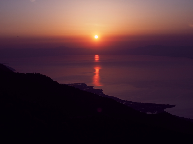 ちょうどいい場所で日の出を迎えたんじゃないですか。琵琶湖の向こうから頭を出す太陽。いいですね~。