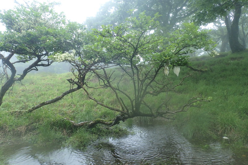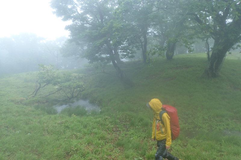 一人では歩く気分が萎えてしまいそうな天気でしたが、霧や雨にけぶる御池岳を味わうことが出来ました。山上台地には普段は見ることのない小さな池がたくさん出来ていて、覗きながら歩くのが楽しかったです。