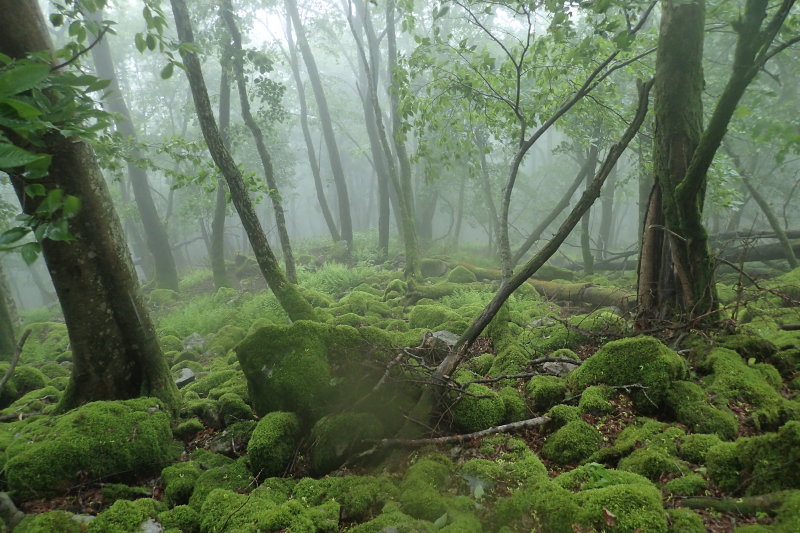 て幻想的な雰囲気を漂わせている。木の幹を流れ落ちる雨水に手を触れると冷たいような温かいような、ブナ