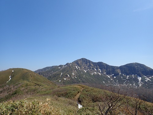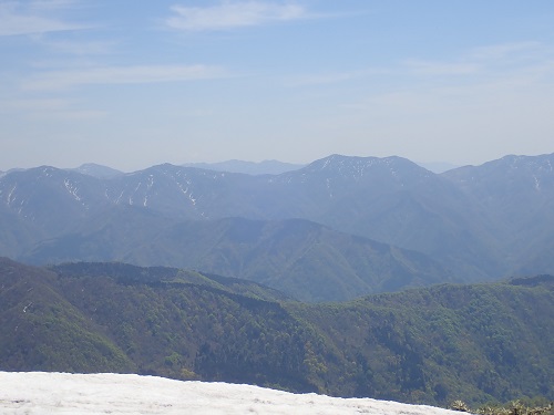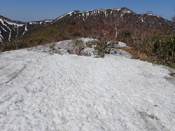 連休明けの能郷白山の積雪はどのくらい?最後の斜面はまだ雪が合ったでしょうか前山を通過して、能郷白山が見える辺りがたくさんありました。