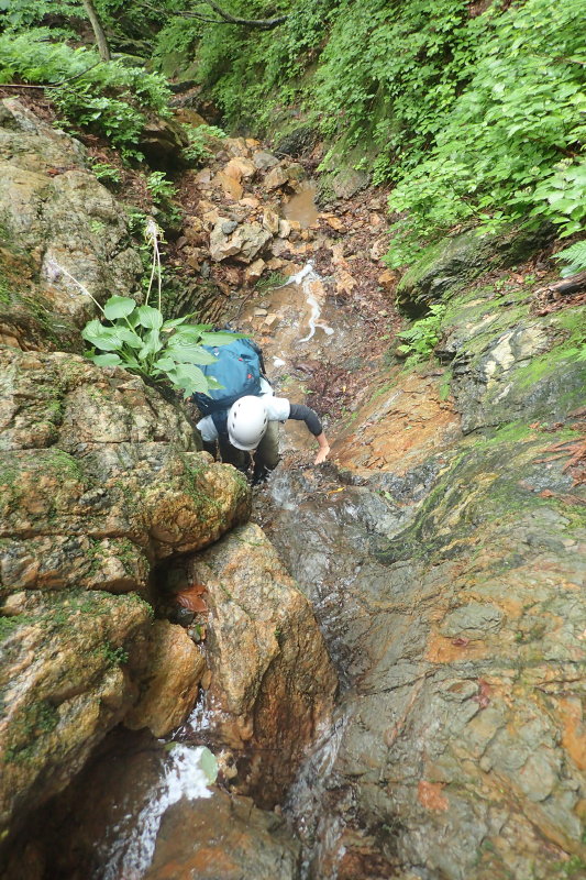 滝の上流もうれしい誤算が続いた。それなりの滝が次々と現れ、直登と高巻きを取り混ぜて楽しく遡行して行