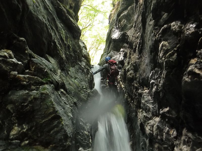 ↓ 下は木梶ゴルジュを突破するグーさん