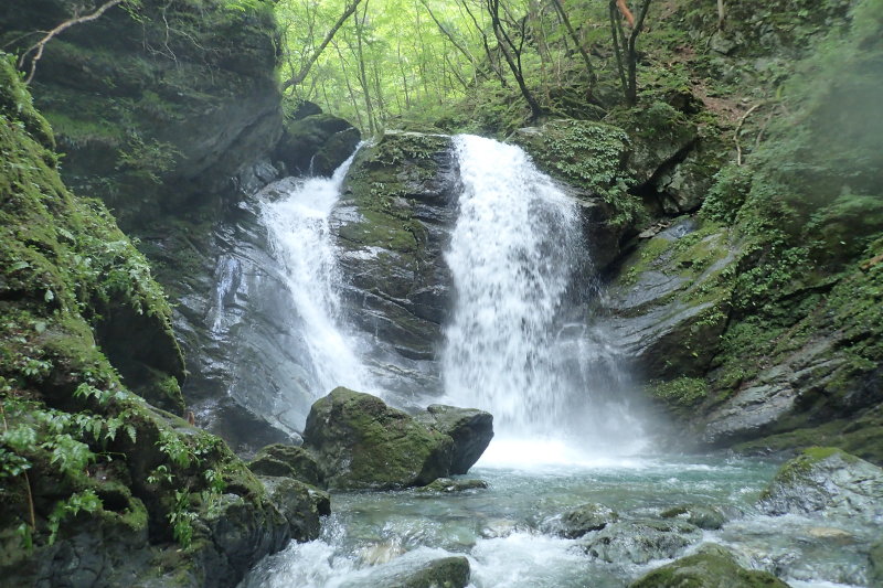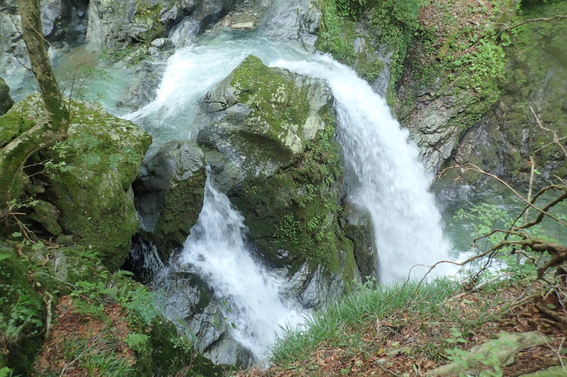 深さになっていたので、滝に取り付くこともできず右岸の斜面を上がって登山道に出た。