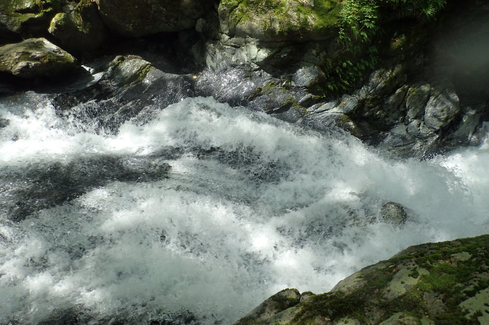 なら流れの中をヒタヒタと歩くナメ滝がとんでもない激流になっている。