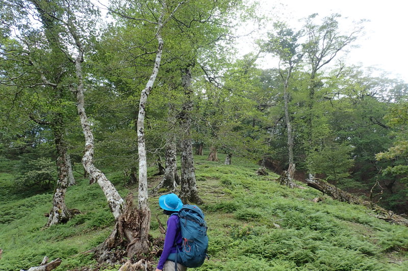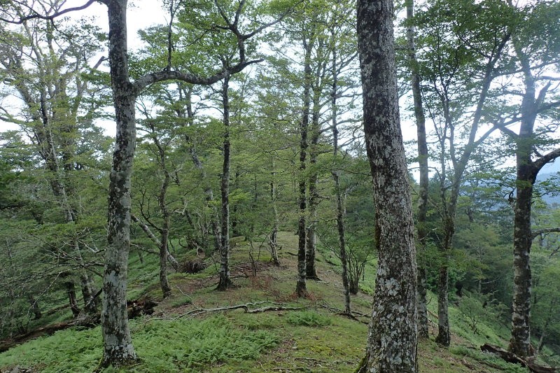 と傾斜も緩み、はっきりとした尾根に乗る。この尾根はブナ、ミズナラ、ヒメシャラの素晴らしい樹林が広がる