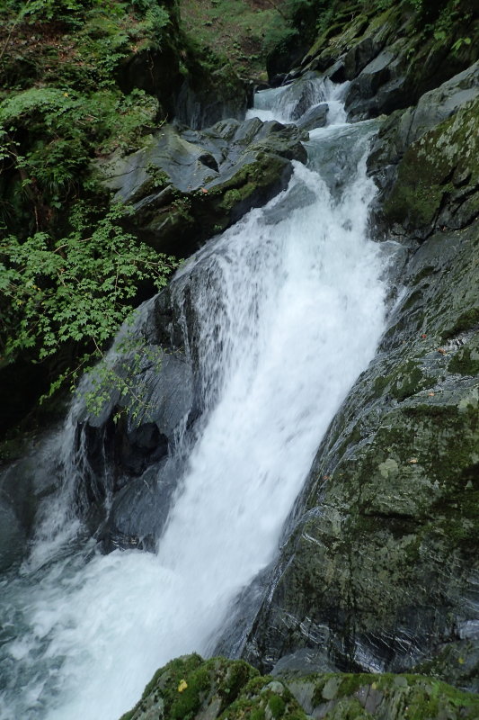 そしてゴルジュ出口のチョックストン滝。両岸が極端に迫ったここは、滝までのアプローチが背丈を越えそうな