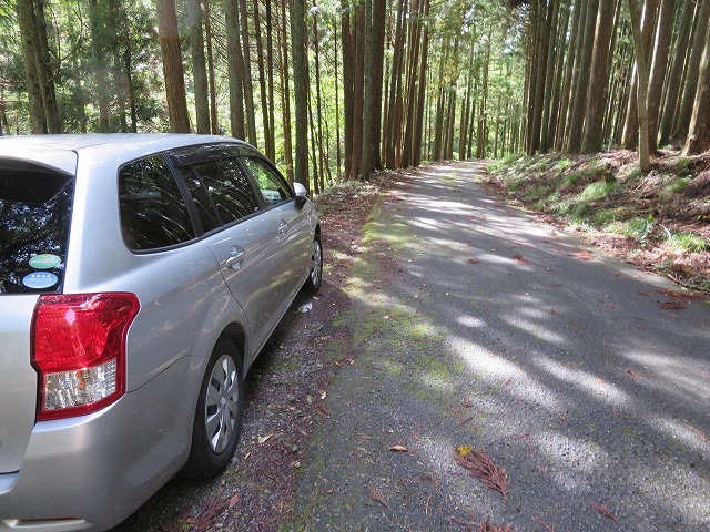 最後に小又谷登山口から駐車地までの長~い林道歩き、諦めて歩いていると前方から黒っぽい、如何にも登山者が乗りそうな車が