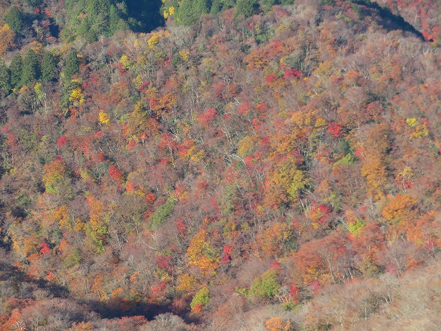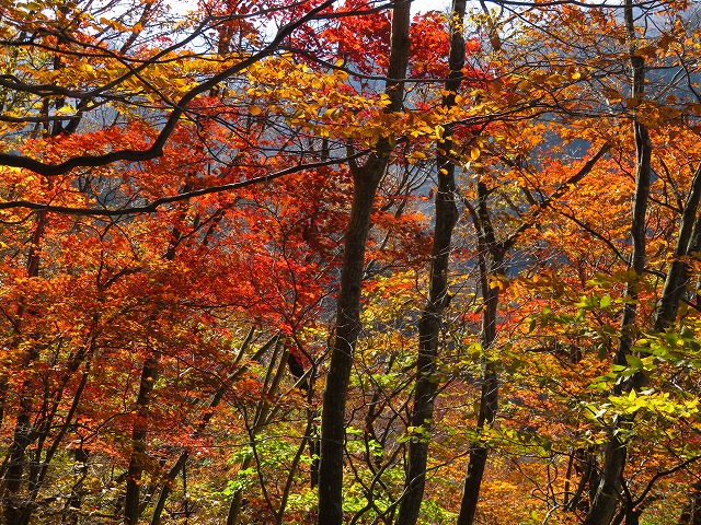 土倉岳南尾根の紅葉は陽光を浴びて輝き、写真を撮りまくって下りとしては結構時間がかかりました。