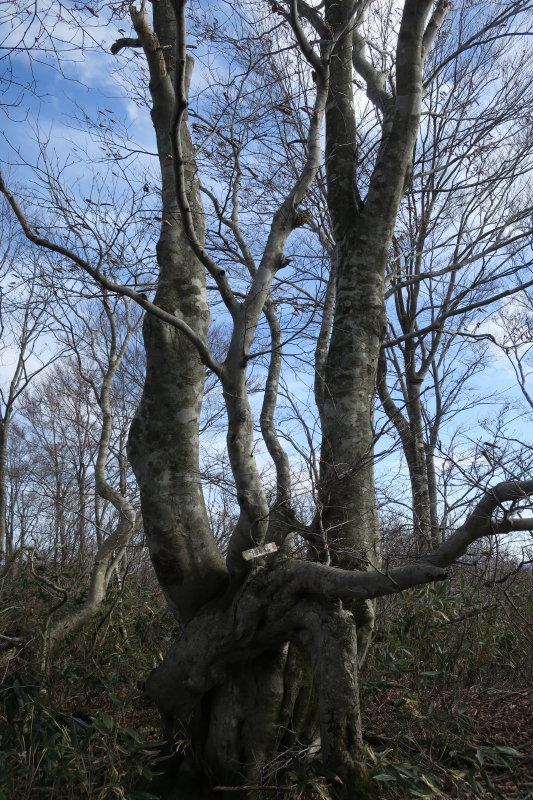 驚いたのは見たことのない大きなブナがあったことだ。積雪期には細いブナが2本立っているように見えたのだ