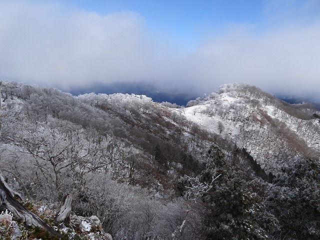 奥峰で昼食中の急な晴れ間に桧塚方面を