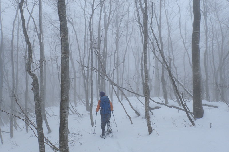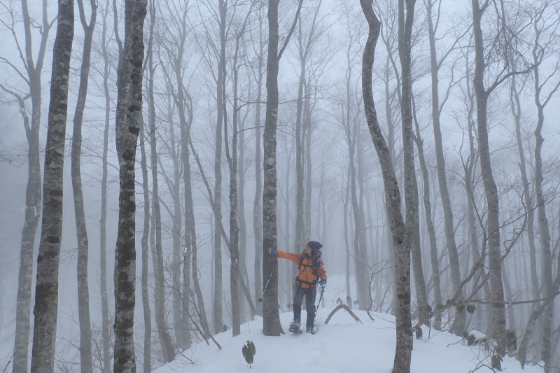 開き直って、霧にむせぶブナ林を楽しもうと腹をくくった。