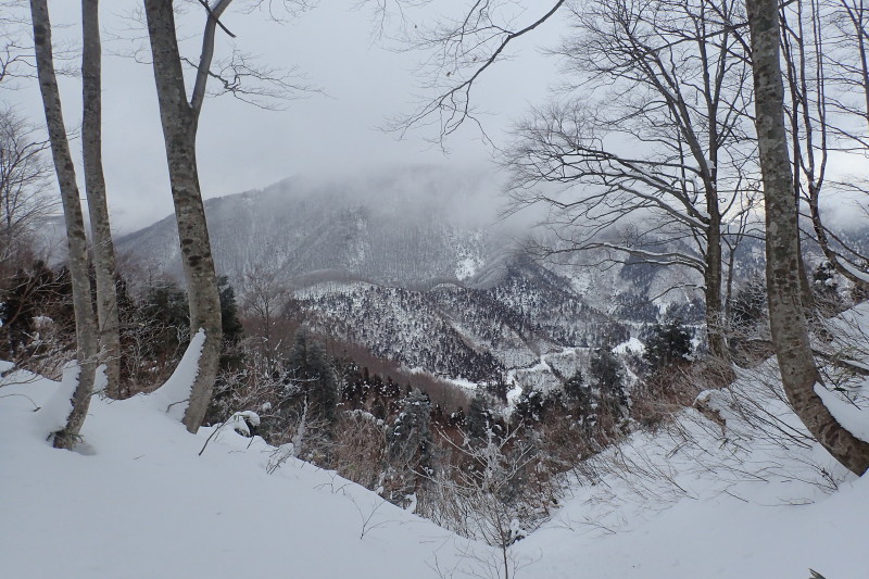 空の色は相も変わらずだったが、巣原峠への尾根から別れるあたりまで来ると、部子山方面の斜面に柔らかい