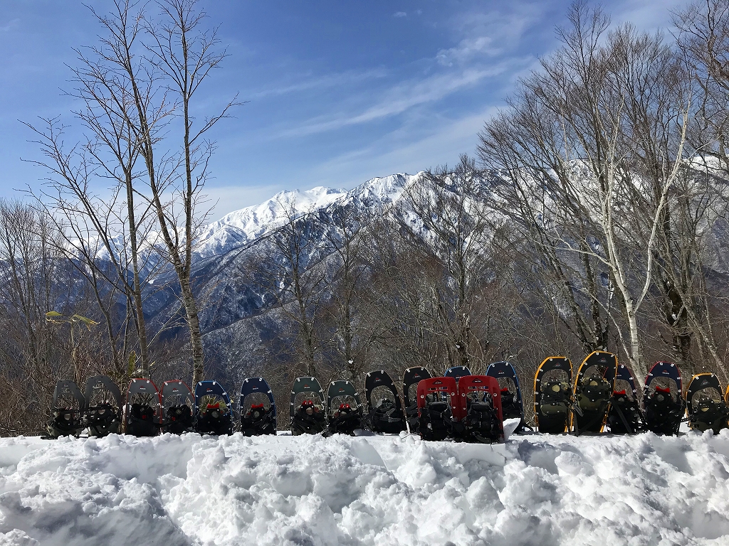 パラダイスの台地にいつものようにスノーテーブルを作り、いつものようにスノーシューを並べたのですね。
