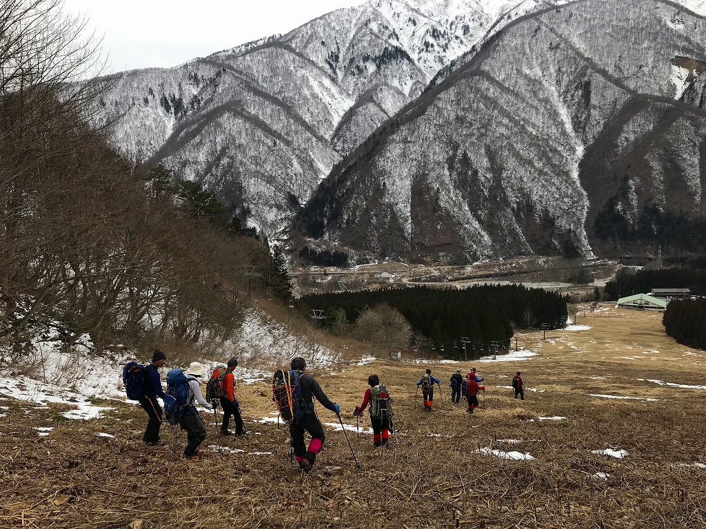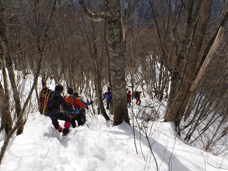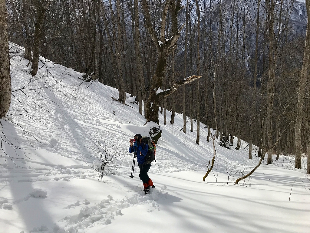 野々俣谷左岸尾根は、雪はしばらくは土の上にまだらに残る程度しかありませんでしたが、