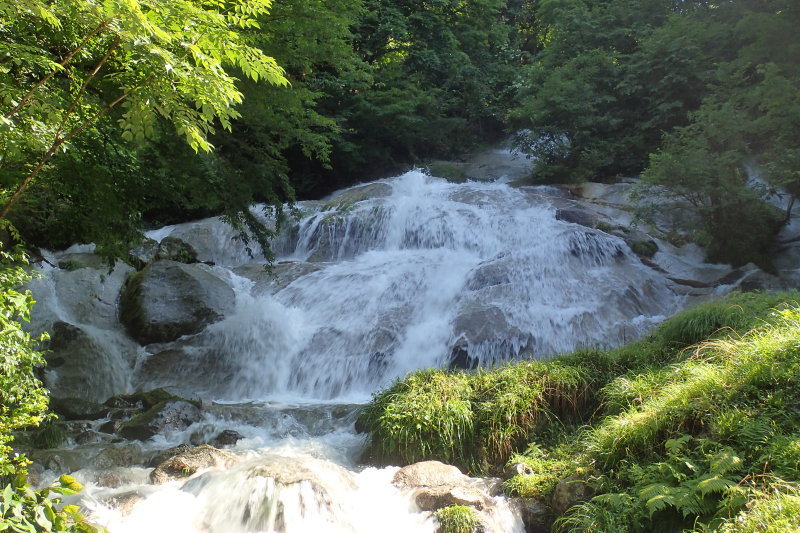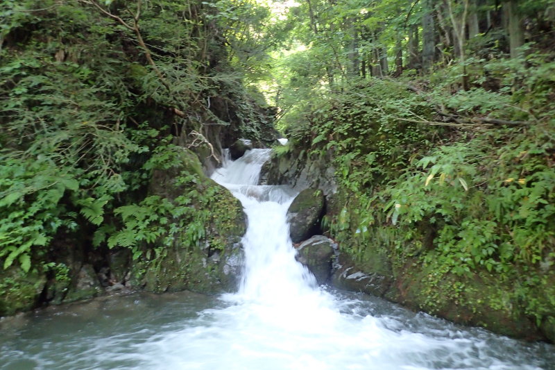 滝は10m以下の小滝ばかり。それも傾斜の緩い斜瀑なので圧迫感はない。