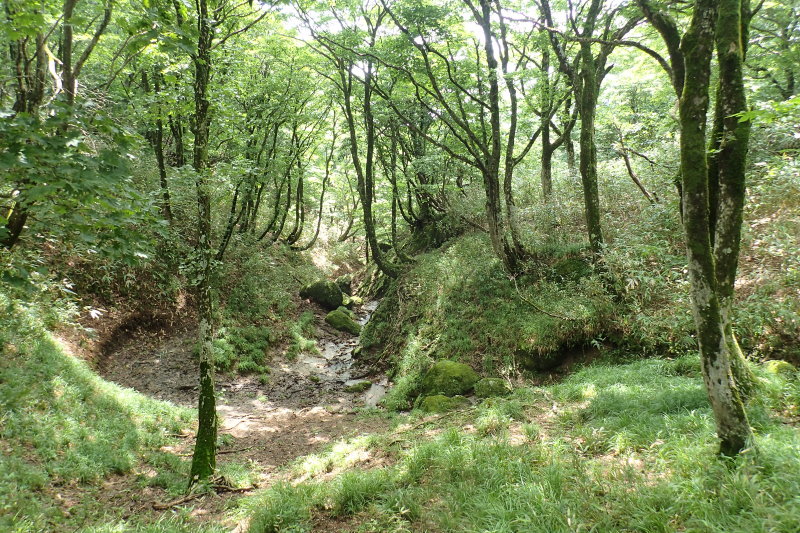 特に1187mピーク南の鞍部は、遡行してきた谷の支流の源流がすぐ横にあり、自然林のすっきりとした佇まいが素晴らしい。
